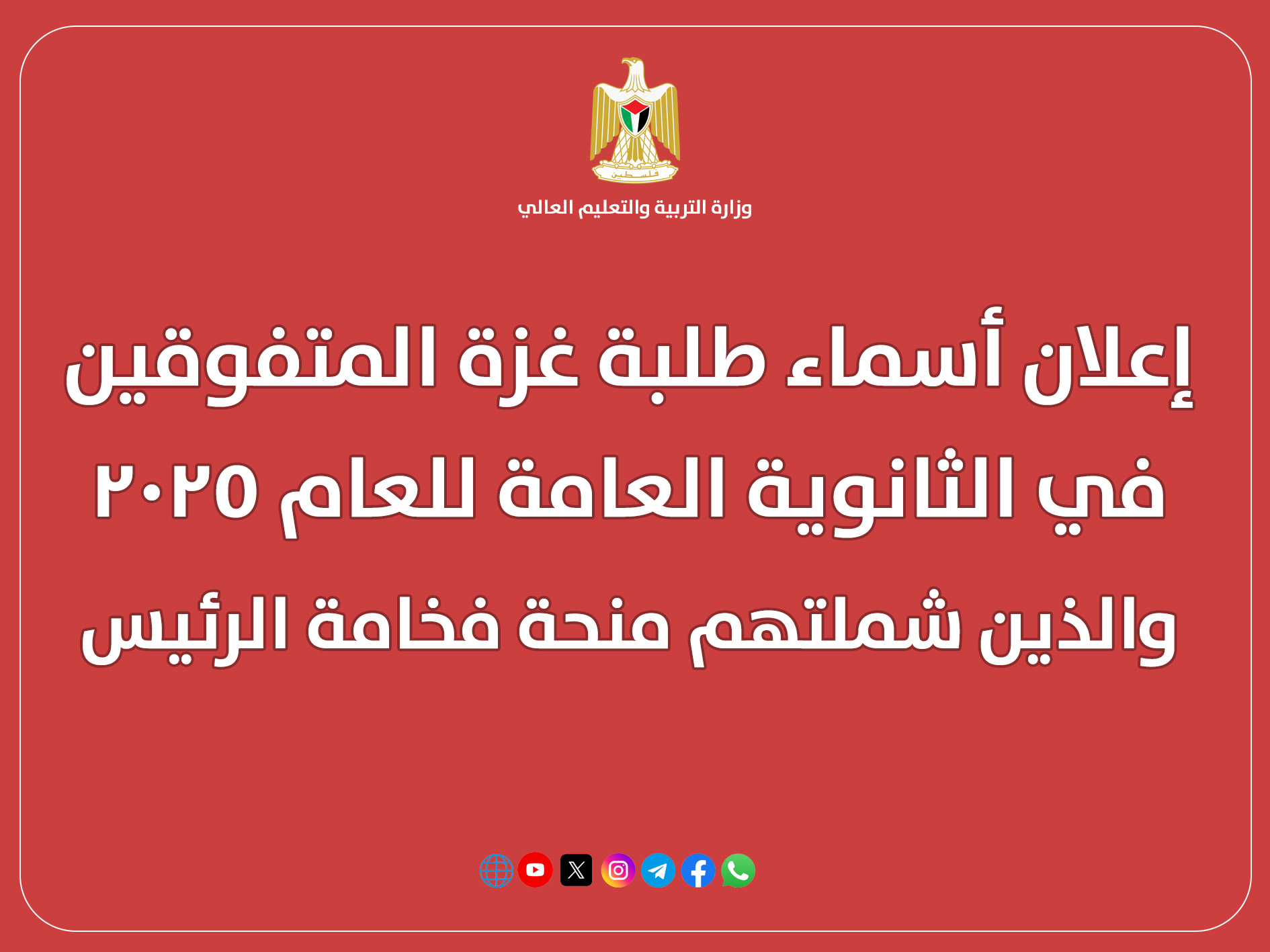 الوزارة تعلن أسماء طلبة غزة الذين شملتهم منحة فخامة الرئيس.