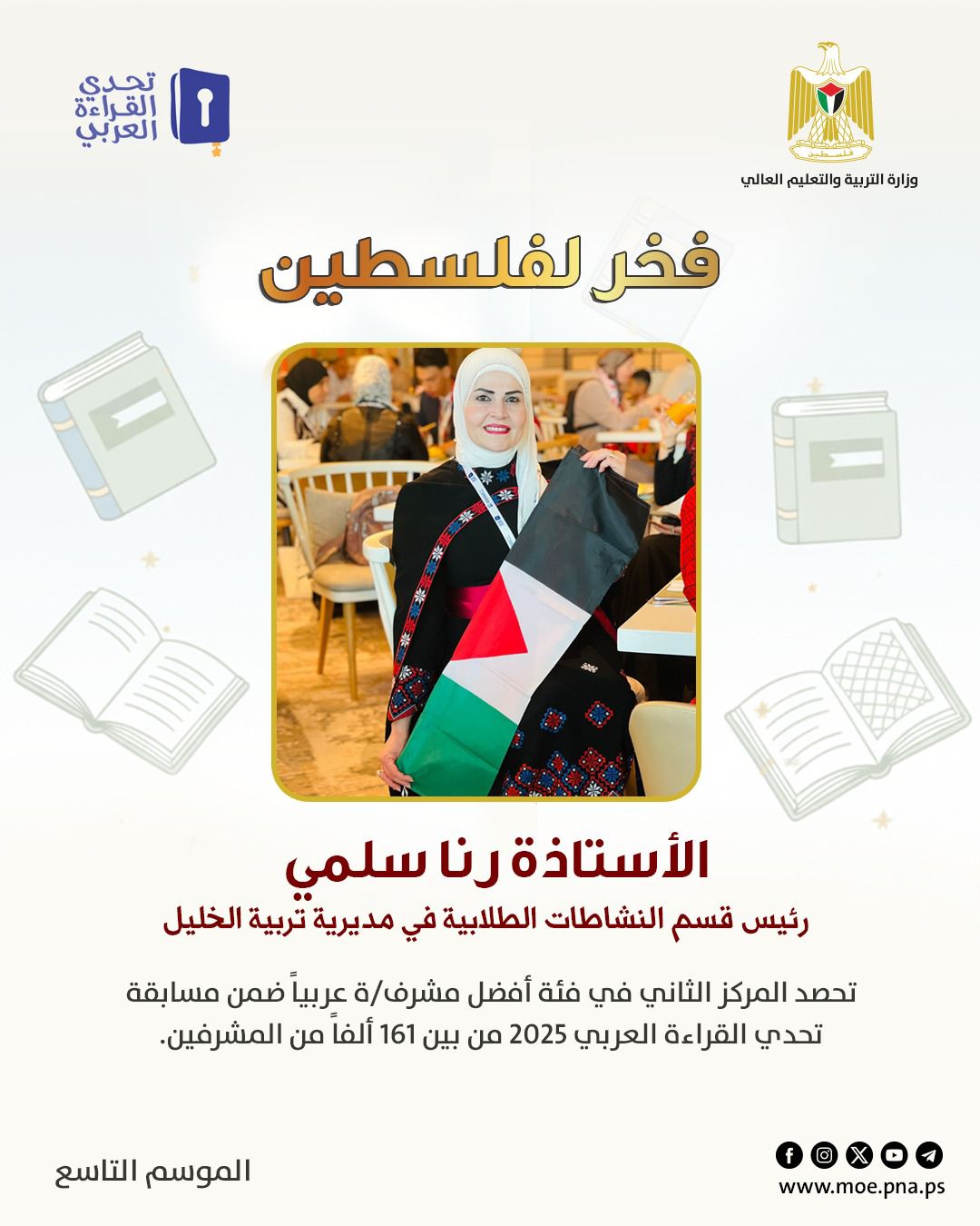 🥈 رنا سلمي الثانية عربياً في فئة أفضل مشرف/ة ضمن تحدي #القراءة العربي. 📖